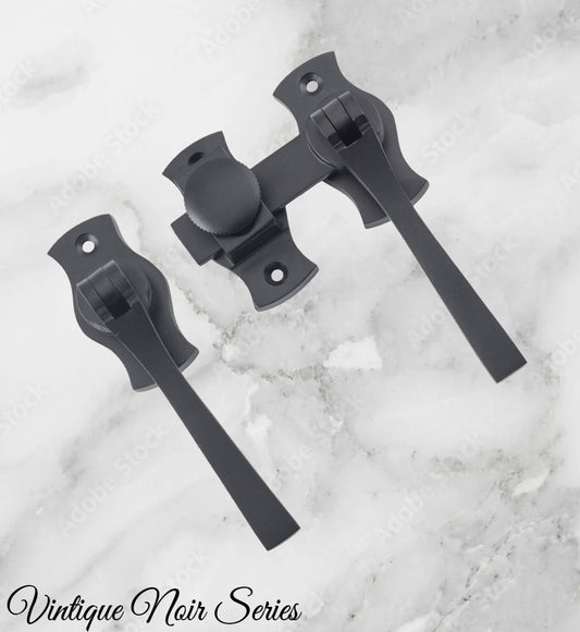 Noir matt Black electroplated Brass French door Square drop handle set