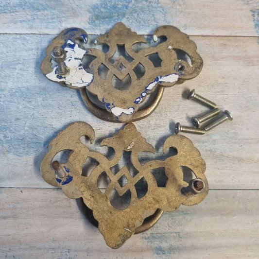 Recycled antique pressed brass Drawer swing handles (pair)88x53mm