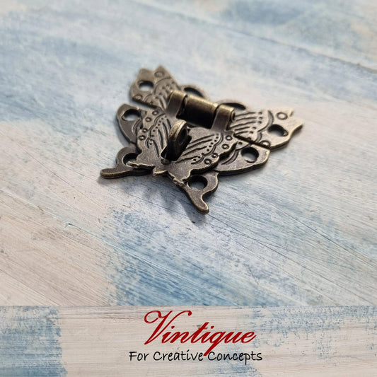 Victorian Wooden Chest Latch Bronze Butterfly, 50mm x 43mm