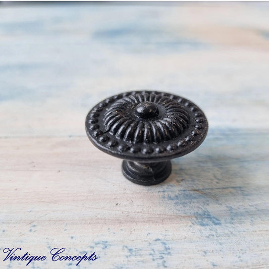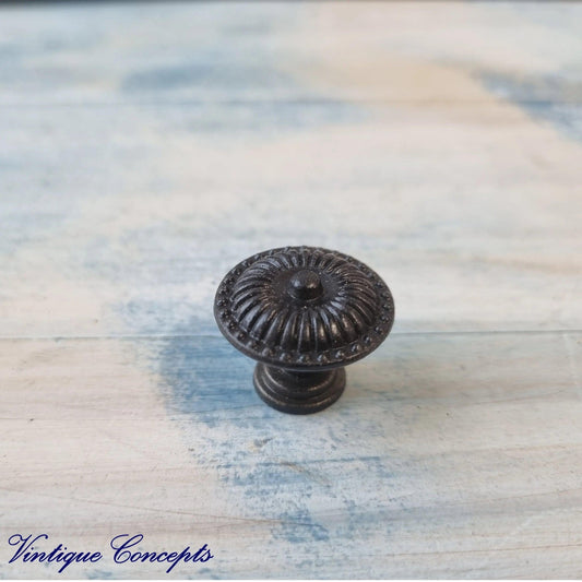 BLACK painted Ribbed Vintage Bronze Furniture Knob 30mm diameter