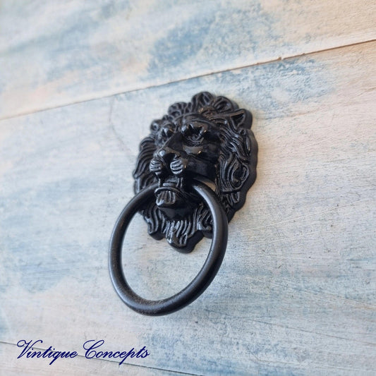 Lion Head Ring Drawer Pull BLACK- 43mm x 67mm