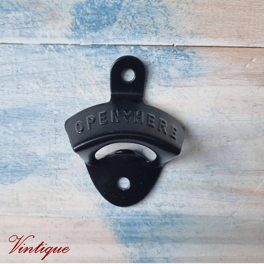 OPEN HERE- BLACK Wall Mounted Vintage Bottle opener for beer bottles etc