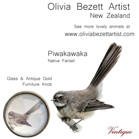 Olivia Bezett's Pīwakawaka Furniture Knob - Antique Gold 38mm Dia