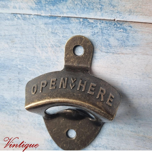 OPEN HERE- BRONZE Wall Mounted Vintage Bottle opener for beer bottles etc