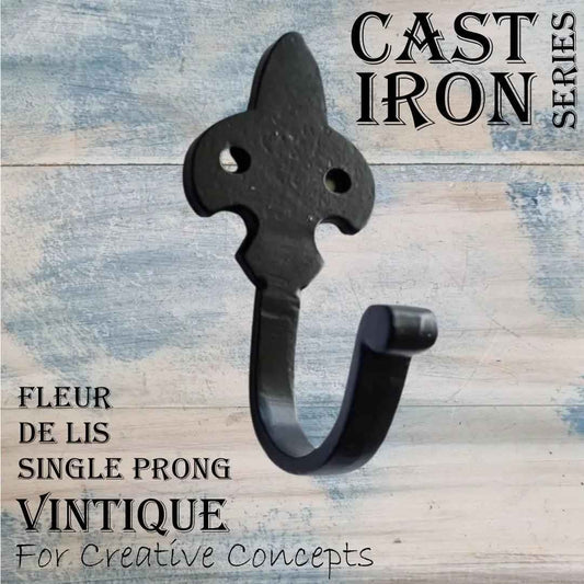 Cast Iron FLEUR DE LIS single prong Coathook 120mm long