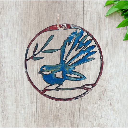 Small fantail circle wall metal art coated in pourable epoxy 120mm dia