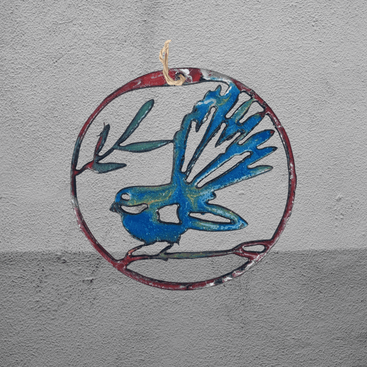 large fantail circle wall metal art coated in pourable epoxy 180mm dia