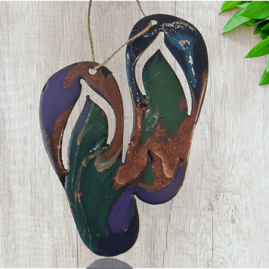 Jandals metal art coated in pourable epoxy 130,mm x 160mnm