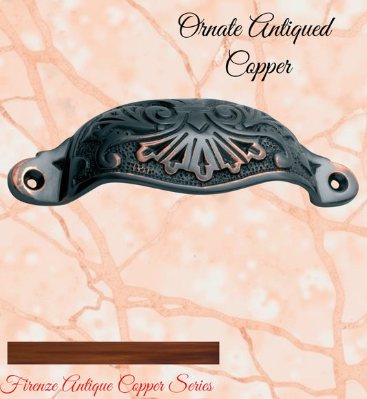 Regal Antiqued Copper Victoria's Ornate Cup Drawer pull 110mm Long