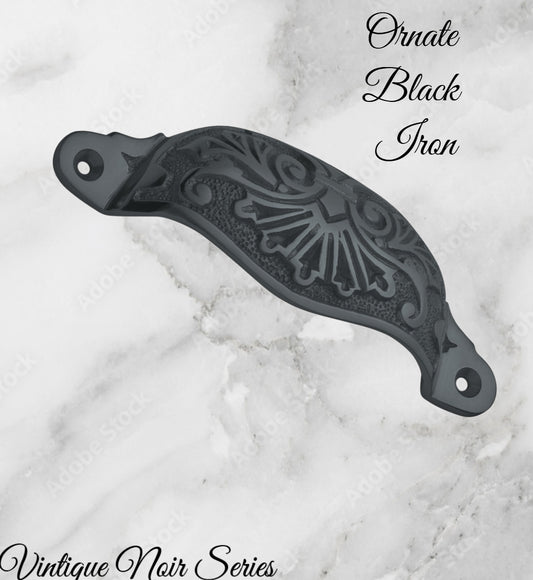 Rustic Black Iron Victoria's Ornate Cup Drawer pull 110mm Long