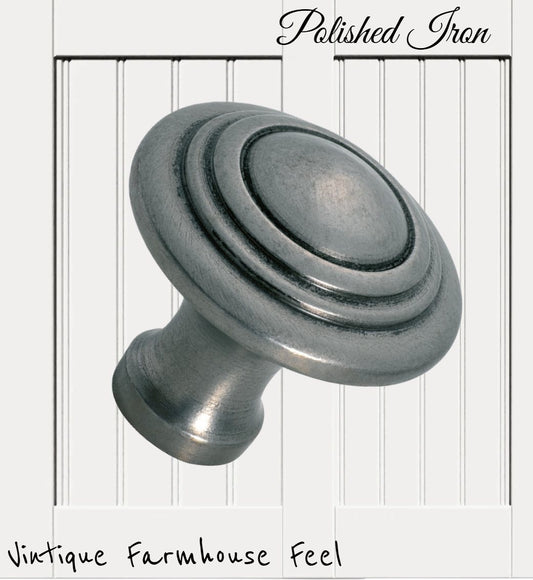 Farmhouse Polished Iron Ringed Knob (3 sizes)