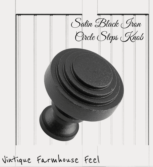 Farmhouse Satin Black Iron Circle Steps Knob 30mm dia