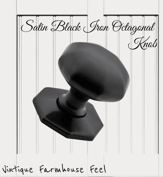 Farmhouse Satin Black Iron Octagonal Knob with Backplate (3 sizes)