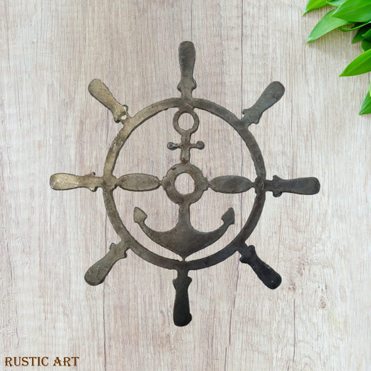 Jumbo Anchor & Ships wheel -Corten Rusty large hanging metal art 410mm dia