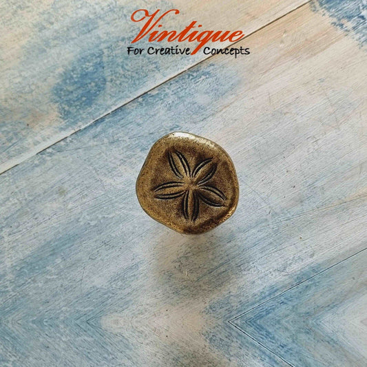 Antique Gold Drawer Knob - Rustic Flower Design 30mm for Drawers or Cabinets