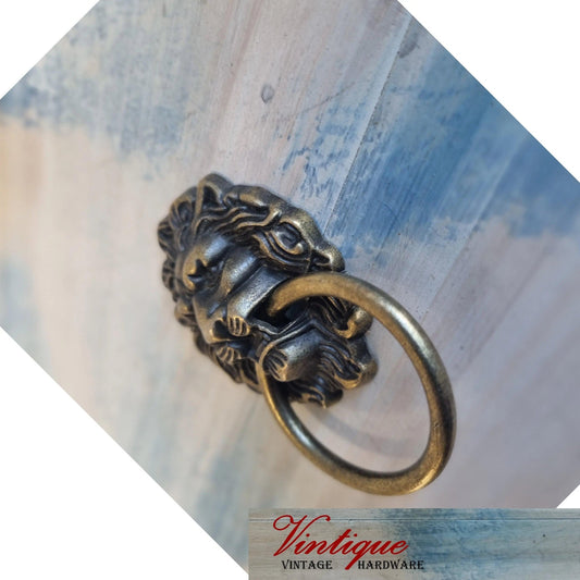 Lion Head Bronze Drawer Ring Pull - 43mm x 67mm