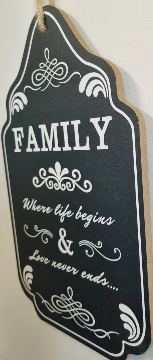 Family-Where Life Begins -Wood sign 15cm x 30cm