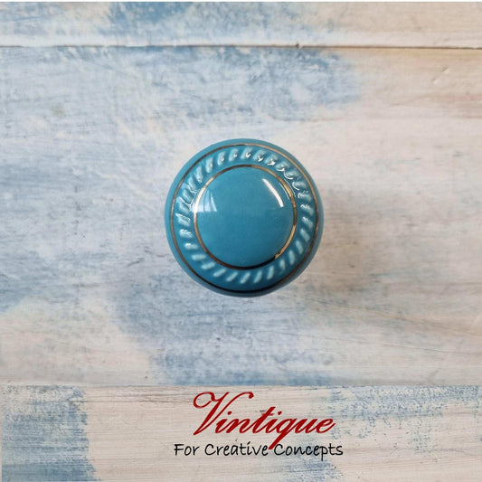 ITALIA Ceramic Cabinet Drawer Knob Blue with Gold inlay 35mm Dia