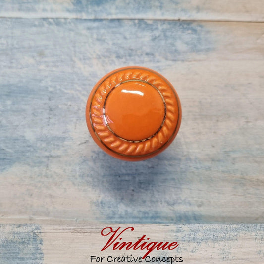 ITALIA Ceramic Cabinet Drawer Knob ORANGE with Gold inlay 35mm Dia