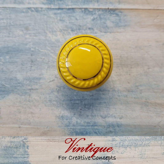 ITALIA Ceramic Cabinet Drawer Knob YELLOW with Gold inlay 35mm Dia