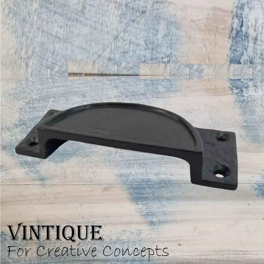 Cast Iron Drawer Handle - Dimpled Rectangle Half Moon Cup 105mm Long