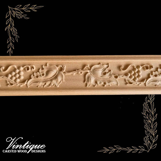 Vino Grape Wood Applique 40cm x 10cm Carved Wood Centre Decor