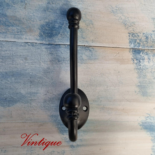 Metal Ball Elegant Double Prong Black Coat Hook - 130mm Long