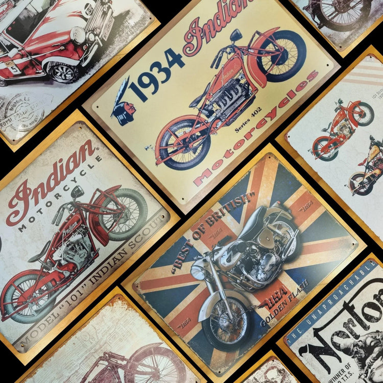 A great collection of your vintage motorbikes and cars, Mostly Vintage this range if tin signs and wood signs are really cool.