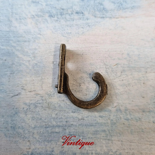 Small Bronze Coat Hook 28mm x 23mm - Single Prong Key Hook