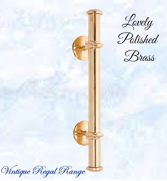 Polished Brass Edwardian Cylinder hole door handle 255mm H