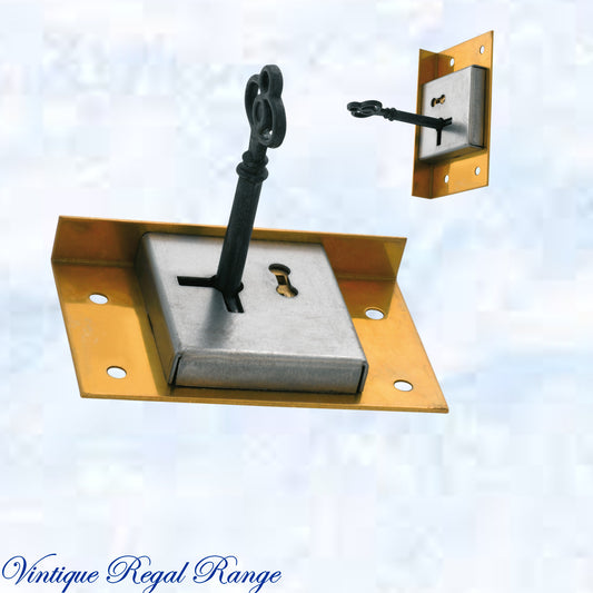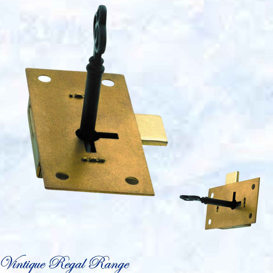 Antique polished brass Drawer Lock & Key 63W x 48mmH