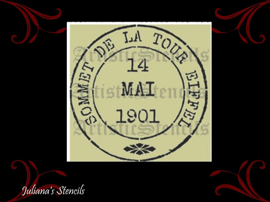 Eiffel Tower 1901 Postage stamp paint furniture Stencil 180mm diameter