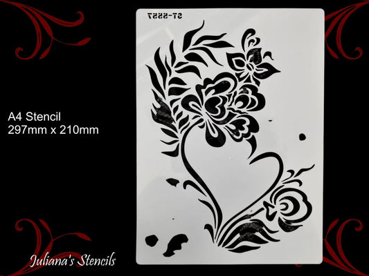 Floral Heart Vintage furniture paint stencil (A4 Size)