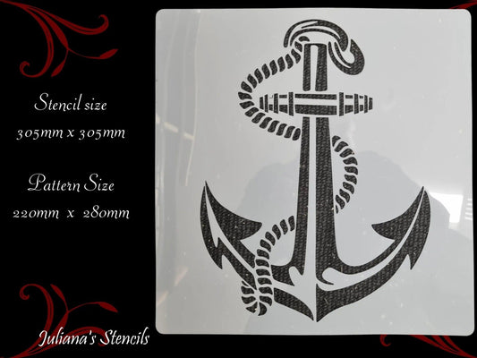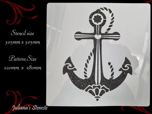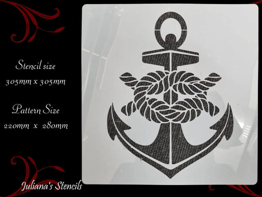 Nautical Anchor with Rope wrap around Furniture & wall Paint Stencil 305 x 305mm