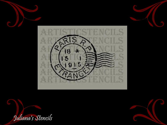 Vintage Paris 1915 postage stamp furniture paint stencil 25.4cm x 17cm