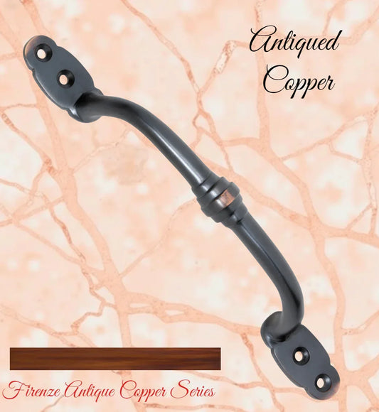 Antiqued Copper Victorian Offset Ringed Door handle 180mm long