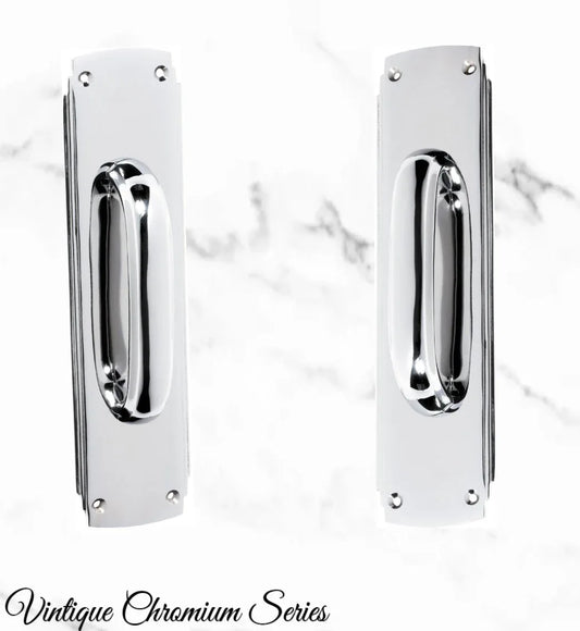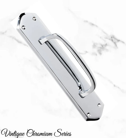 Chrome Art Deco Pull handle w/backplate 240x60mm