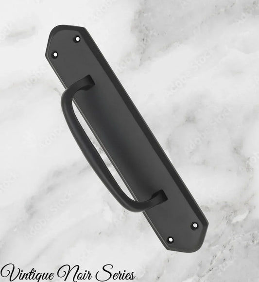 Matt Black Retro Offset Pull handle w/backplate 250x50mm