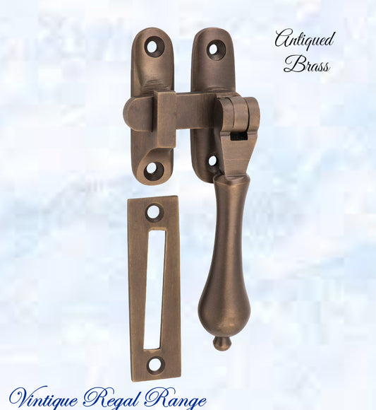 Antiqued brass teardrop window fastener 50 x 95mm Long reach