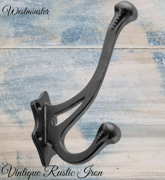 Antique Westminster Large Black Iron Coat & Hat Hook 145 x 100mm