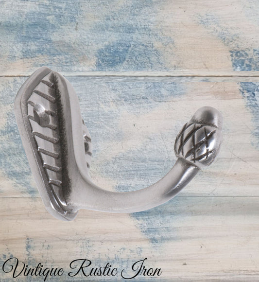 Rustic Polished Iron Acorn single prong robehook 45mm high