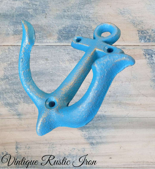 Cast Iron Nautical Blue anchor coat hook