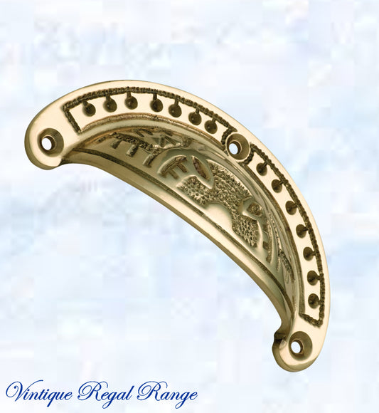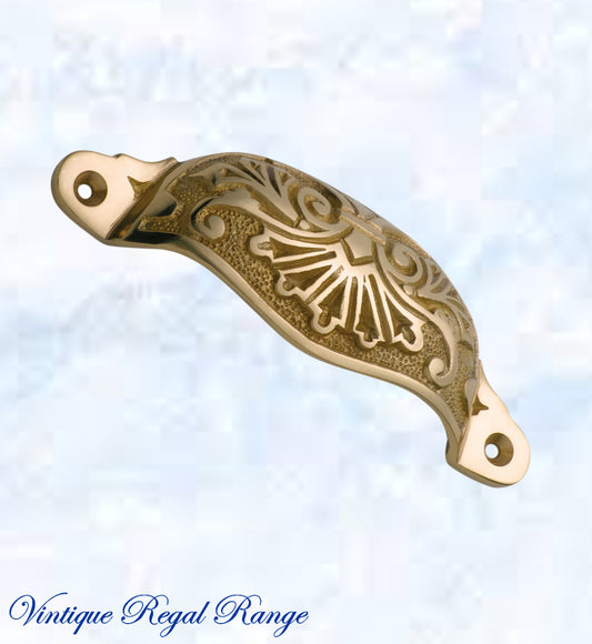 Regal Polished Brass Victoria's Ornate Cup Drawer pull 110mm Long