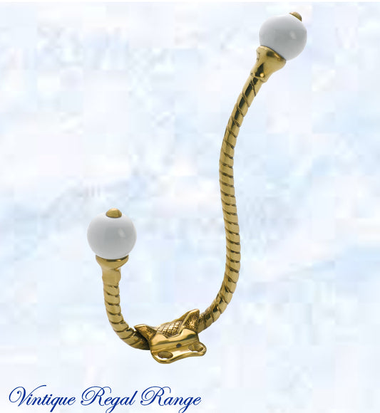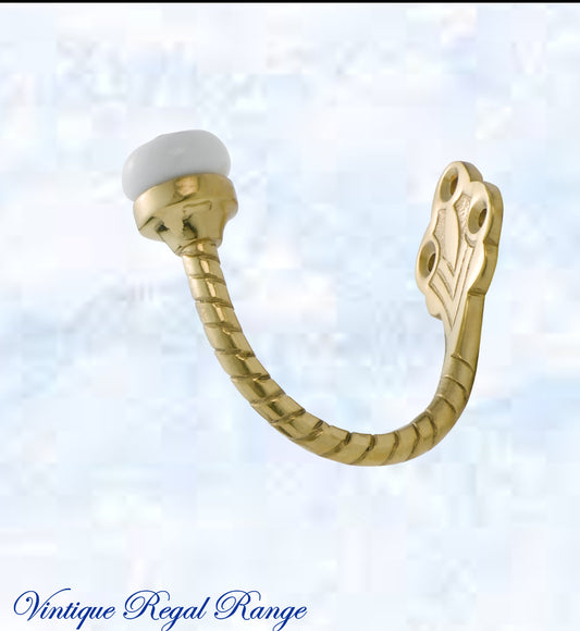 Polished Brass Rope Coat & Hat Hook w/- Porcelian tip 160mm high