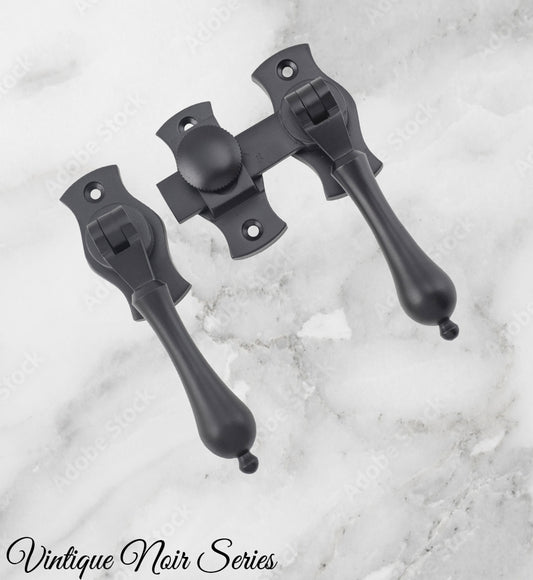 Noir matt Black electroplated Brass French door Teardrop handle set