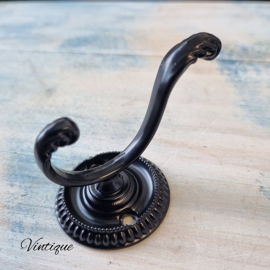 Albert's Black Ornate 2 Prong Robe Hook 65 x 50mm
