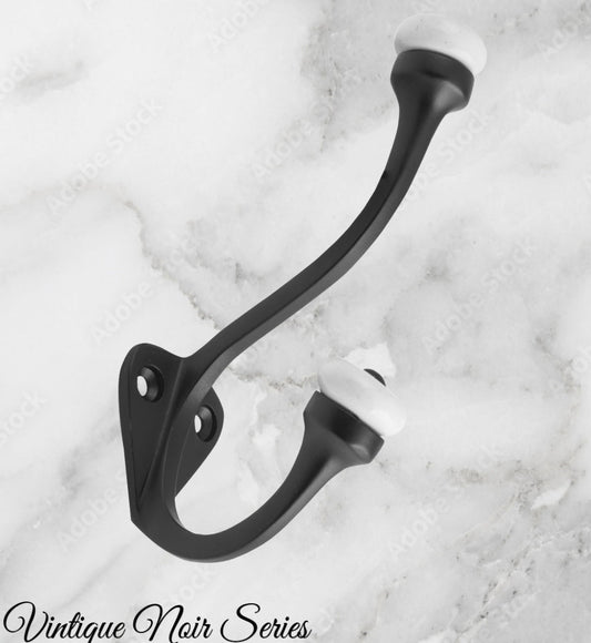 Matt Black Victorian Coat & Hat Hook W/Porcelian 115mm x 75mm