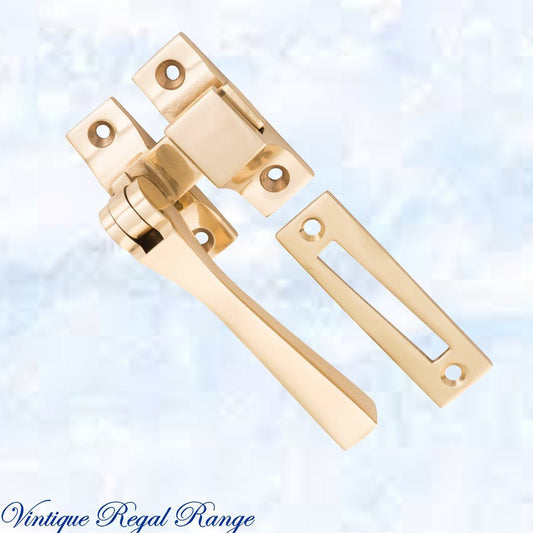 Polished brass Art-Deco window fastener 50mm x 85mm
