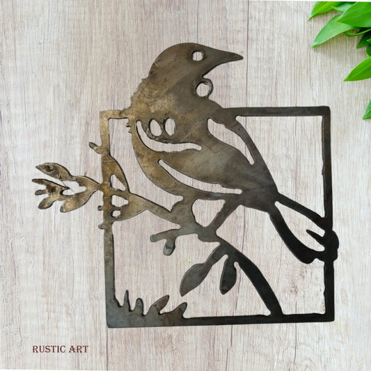 Framed Rusty Metal Bird TUI - Musical Bird Art 198mm x 183mm