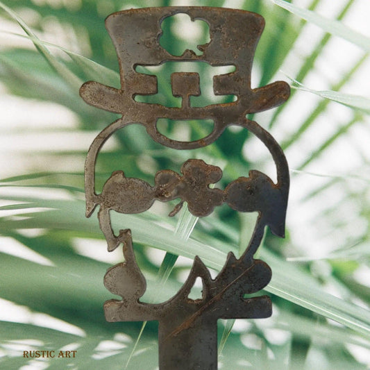 GARDEN GNOME ON STAKE -Corten Rusty metal art 270mm x 120mm